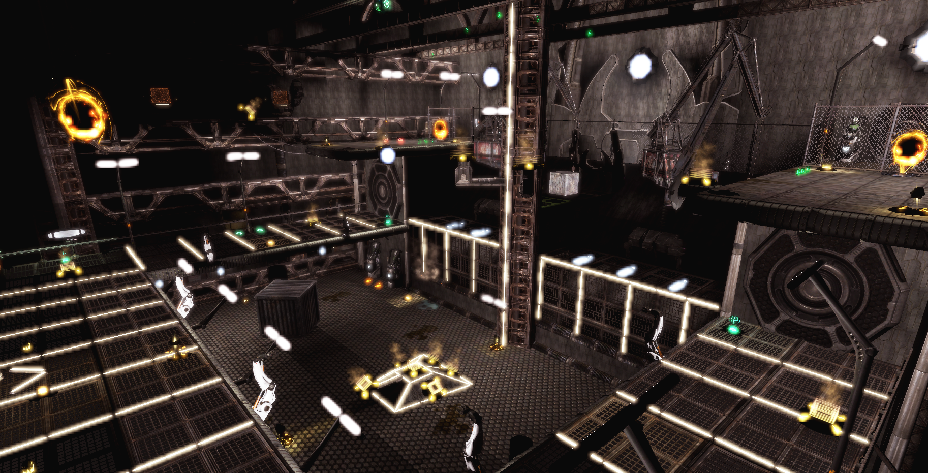 A space ship passing through the playing field. A warning is displayed on all players’ screens followed by a warning sound as the ship passes through the zone. A design goal was to accent the space station theme with an environmental hazard. A passing ship creating road kill created reoccurring WOW moment and filling this design goal.