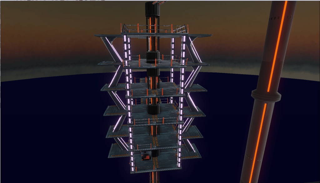 Second Platform: At the bottom lies a grapple point for the player to grapple to the other side to complete an objective. A major design goal was making sure the numerous abilities the player had all felt useful.