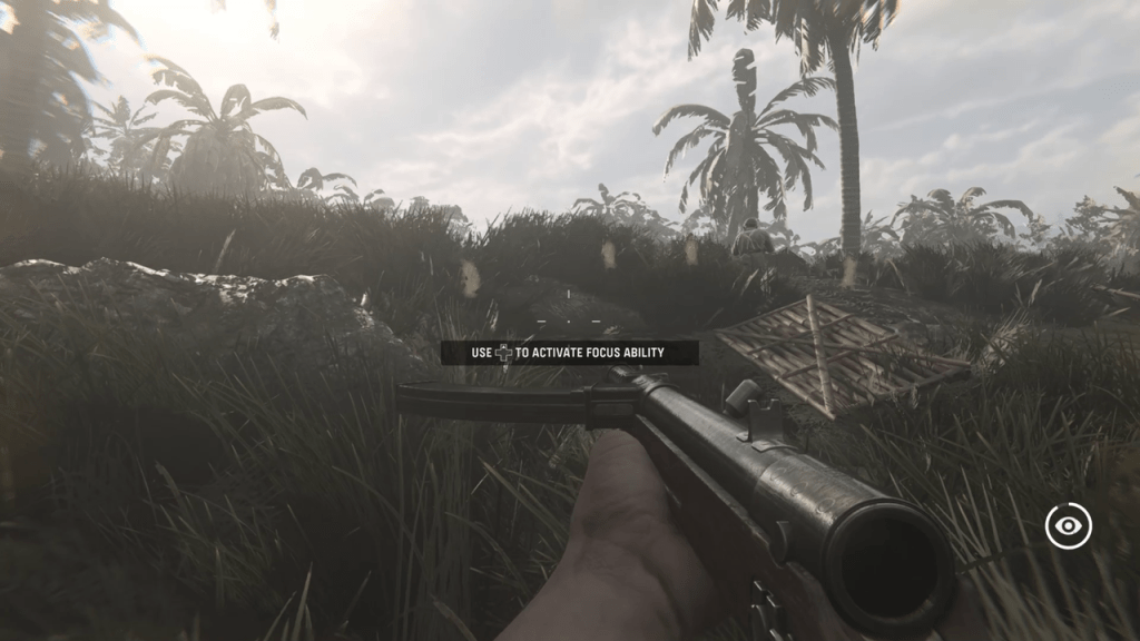 Spider hole combat required using the player ability of snap focusing on targets as enemies were well hidden and partially obscured in the grass.