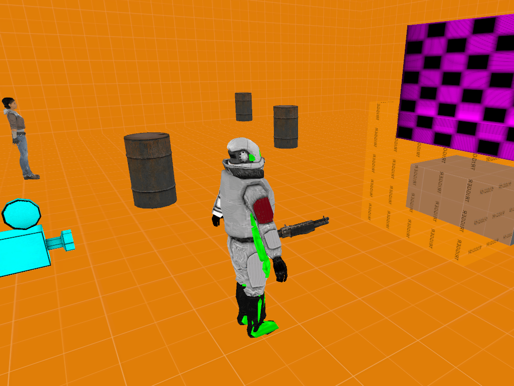 The above image is proof of tech scripting for a third person shooter in Hammer. In the top right corner, a live feed of a friendly AI’s vantage point can be seen, similar to tactical shooters like Ghost Recon.