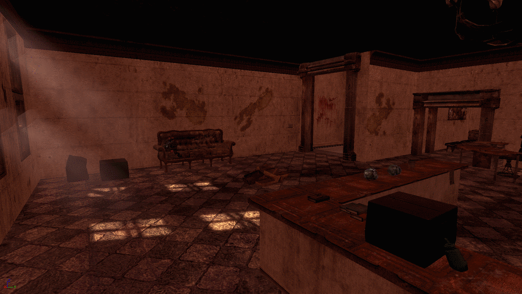 Most Gears of War levels are dark, a design goal was to create a very bright level, sharp shadows and light volumes help the brightness theme.